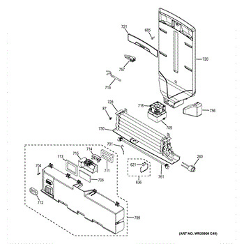 The Damper and Fan Assembly is an OEM part for GE refrigerators. It contains the electric fan that circulates cold air throughout the refrigerator compartment as well as the damper that regulates air flow. Causes of a faulty assembly can be from buildup of dirt or debris obstructing fan blades over many years of use. Damage may also occur if foreign objects contact internal parts. Symptoms of a problematic damper and fan include: