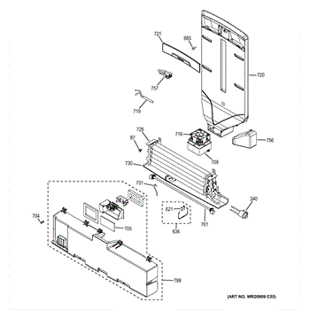 The Refrigerator Evaporator Cover is an OEM replacement part for GE refrigerators. This insulation shield covers evaporator coils to distribute airflow. Causes involve punctures allowing air and moisture bypass, dislodged mounting flanges detaching insulation protection, or deterioration compromising material integrity over years of use. Failures present as: