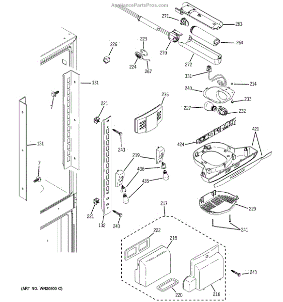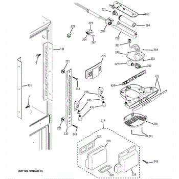 The Water Filter Housing and Tube Assembly is an OEM part for GE refrigerators. This assembly is responsible for securely holding the water filter in place while directing water through the filter and into the dispenser or ice maker. Approximate dimensions: 18" x 14.7" x 3.3"