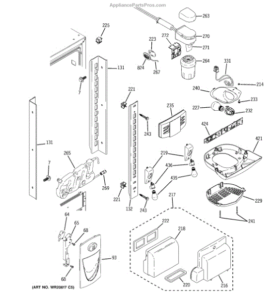 The GE Refrigerator Water Filter Housing and Tube Assembly is an OEM part for GE refrigerators. It houses the water filter and connects it to the water supply line, ensuring clean and filtered water is dispensed.