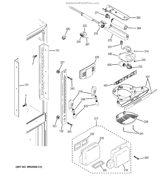 The Water Filter Housing and Tube Assembly is an OEM part for GE refrigerators. This assembly is responsible for securely holding the water filter in place while directing water through the filter and into the dispenser or ice maker. Approximate dimensions: 18" x 14.7" x 3.3"