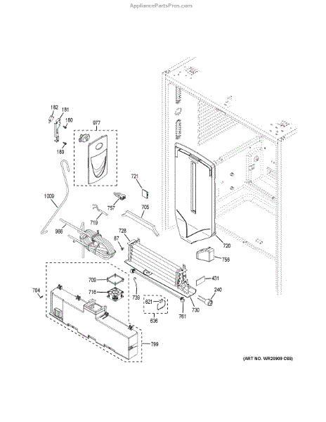 The Evaporator Cover is an OEM replacement part for GE refrigerators. It is responsible for covering and protecting the evaporator coils located inside the refrigerator or freezer compartment.