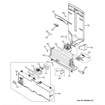 The Damper and Fan Assembly is an OEM part for GE refrigerators. It contains the electric fan that circulates cold air throughout the refrigerator compartment as well as the damper that regulates air flow. Causes of a faulty assembly can be from buildup of dirt or debris obstructing fan blades over many years of use. Damage may also occur if foreign objects contact internal parts. Symptoms of a problematic damper and fan include: