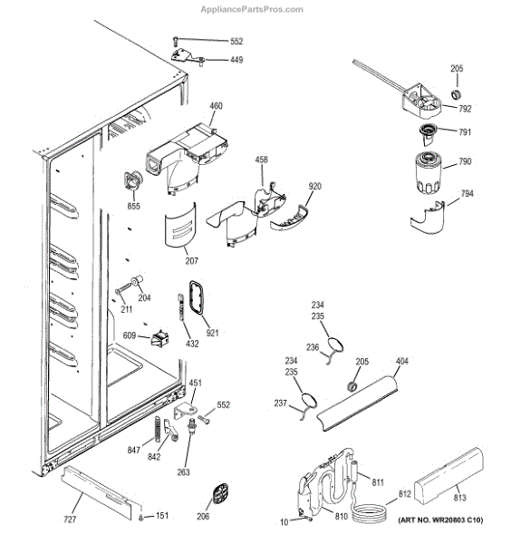 Molded duct assembly directs cold air from freezer to fresh-food section. Replace if cracked, broken, or damaged to restore proper airflow balance.