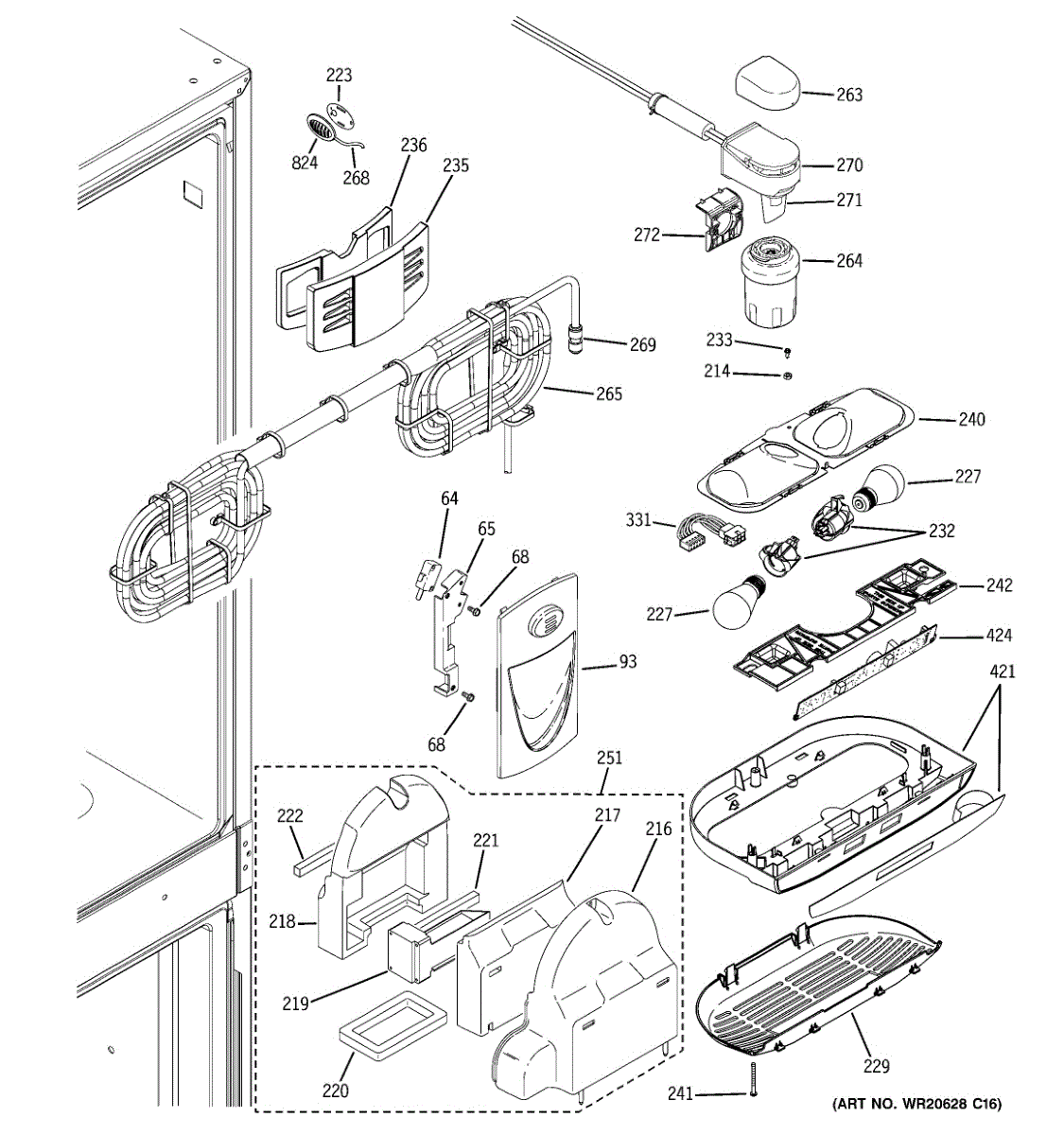 The Dispenser Assembly is an OEM replacement part for GE refrigerators. This actuator is responsible for controlling the functions of the refrigerator's dispenser, allowing you to dispense water or ice.