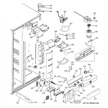 This air diverter is a duct component that directs and balances airflow inside the refrigerator. Replacing a cracked or missing diverter helps restore proper cooling performance and reduce frost or condensation around air passages.