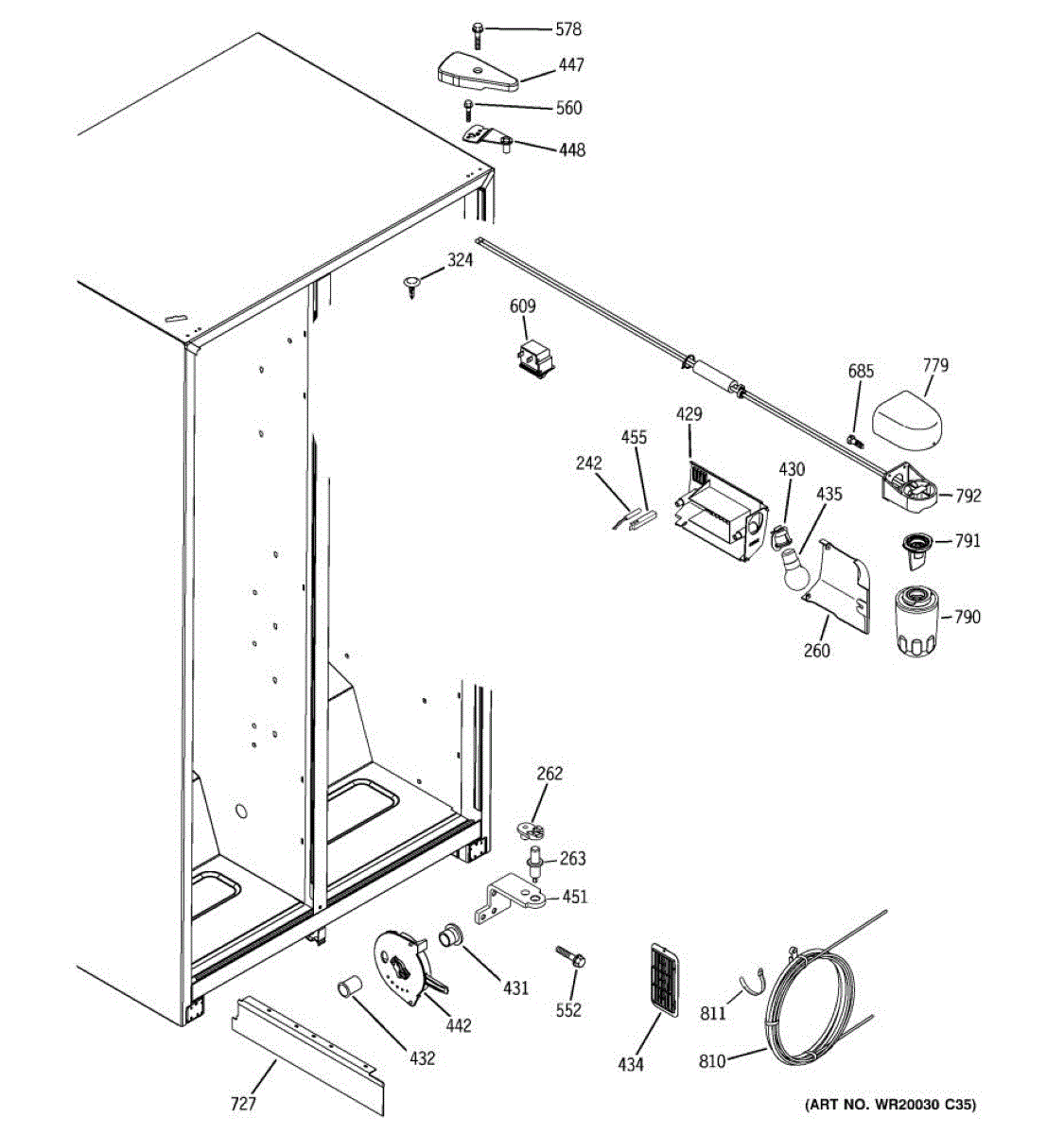The cold water reservoir is an OEM replacement part for GE refrigerators. It serves a dual purpose, holding the supply of cold water needed for both the ice maker and water dispensing functions. This ensures that each ice cube is formed from chilled water and that cold water is always ready to be dispensed.