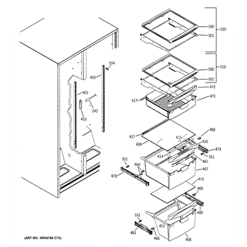 The Slide Assembly RH is an OEM replacement part for GE side-by-side refrigerators. As a replaceable sub-assembly, it restores smooth extension of plastic vegetable/multi-purpose slides on the right interior. The slide measures approximately 16 inches.