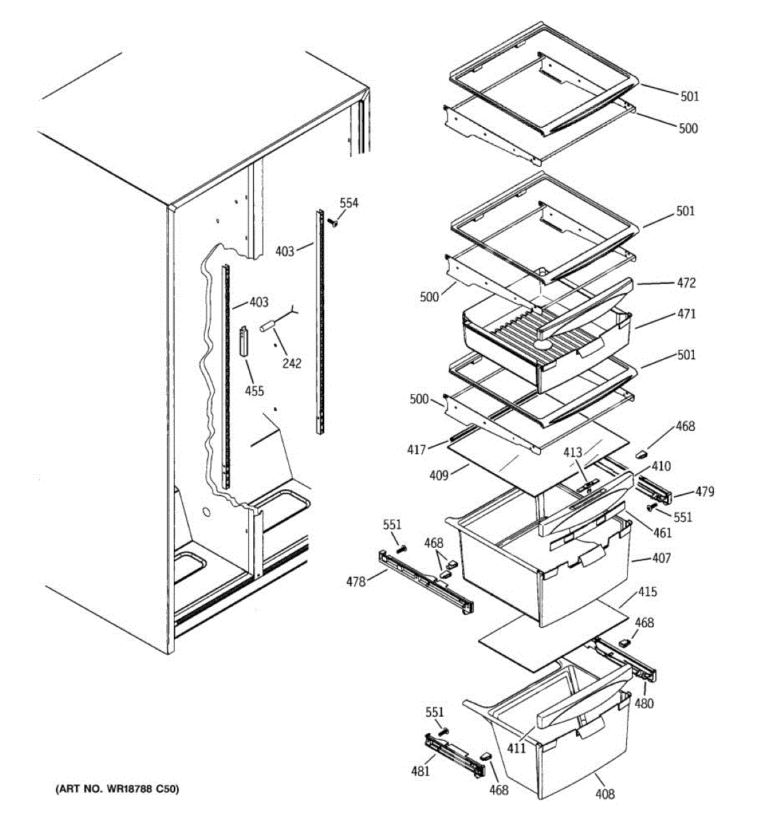 Parts for Ge BSS25JFTIWW: 07 - Fresh Food Shelves Parts