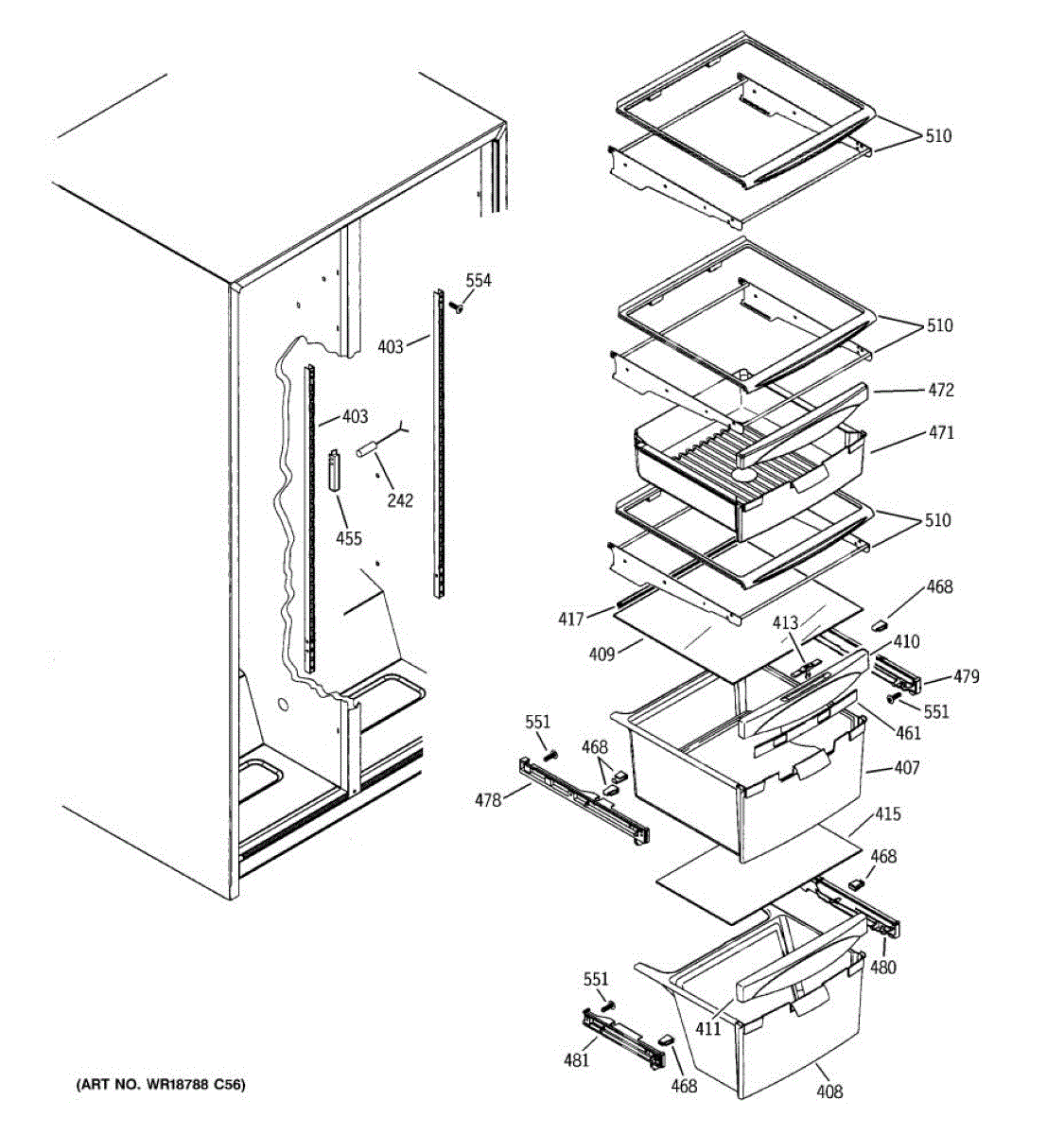 The Slide Assembly RH is an OEM replacement part for GE side-by-side refrigerators. As a replaceable sub-assembly, it restores smooth extension of plastic vegetable/multi-purpose slides on the right interior. The slide measures approximately 16 inches.