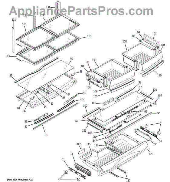 This slide and bracket assembly supports and guides a refrigerator shelf so it moves smoothly and stays level. Replaces worn or damaged slides to restore stable shelf operation and prevent sagging or sticking. What it does: