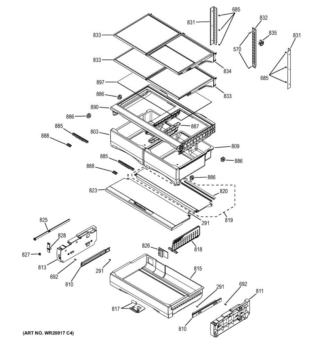 The Shelf Assembly is an OEM component for GE side-by-side refrigerators. Adjustable and positioned on tracks inside fresh food cabinets, it provides flexible storage organization. Reliable shelving depends on a functioning assembly.