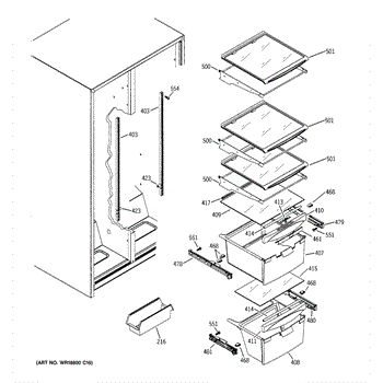 The Slide Assembly RH is an OEM replacement part for GE side-by-side refrigerators. As a replaceable sub-assembly, it restores smooth extension of plastic vegetable/multi-purpose slides on the right interior. The slide measures approximately 16 inches.