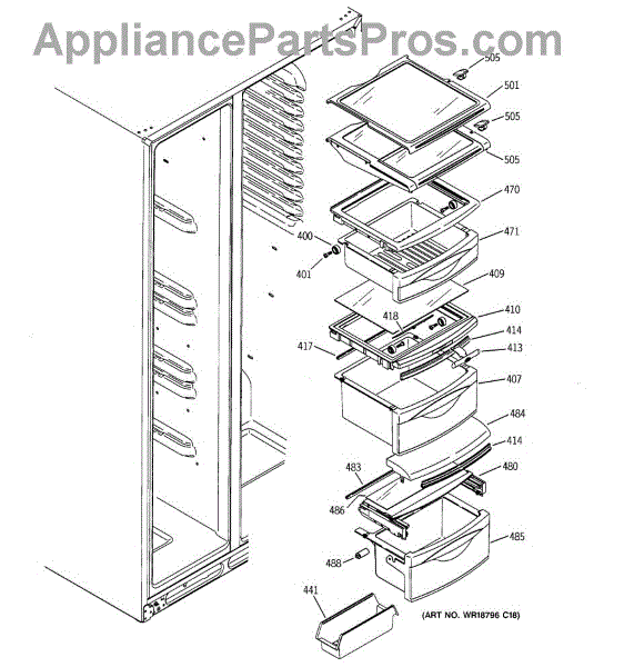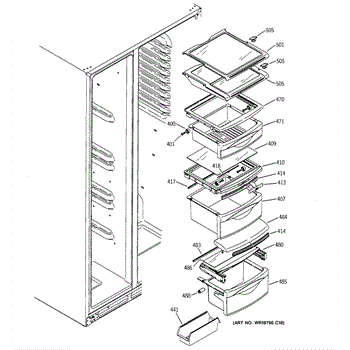 The Drawer Cover is an OEM replacement part for select GE refrigerator vegetable and deli drawers. It protects stored contents from dehydration, contaminants and prolonged illumination while keeping the drawers light-sealed. Proper drawer insulation optimizes food storage conditions. Causes of a bad drawer cover can include cracks and breaks from repeated drawer opening/closing stresses over time. Exposure to produce acids and moisture accelerates degradation of plastic sealing surfaces. Symptoms include: