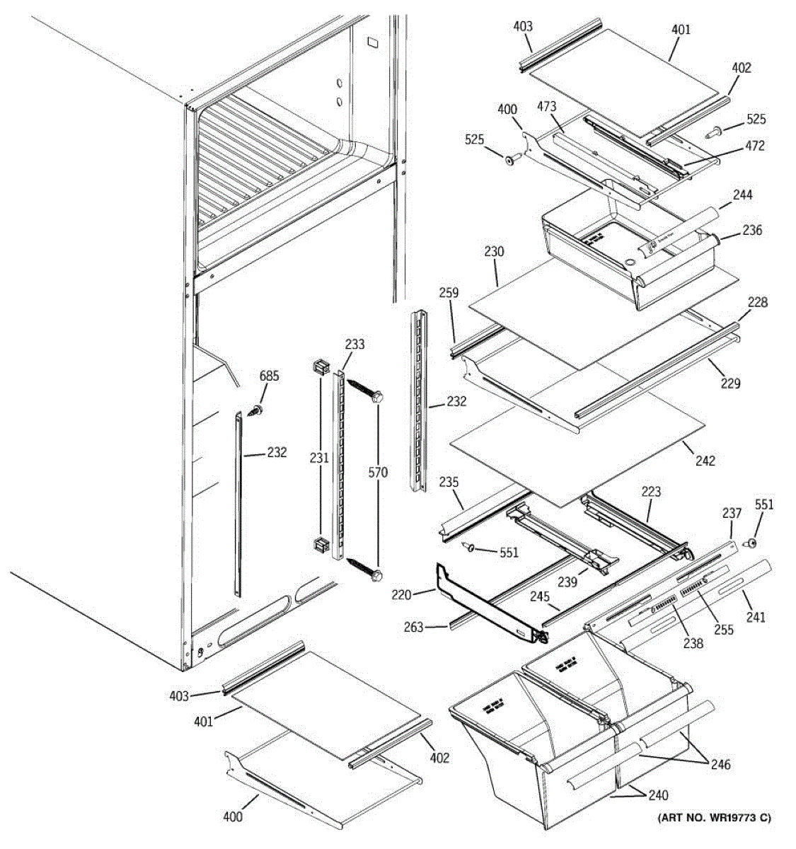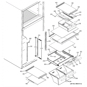 This left side snack pan slide is a genuine General Electric part, sold individually. This left side snack pan slide can be used as a replacement part for a refrigerator. This is the part on which the crisper drawer rests, and it facilitates the sliding in and out of the crisper drawer. The left side snack pan slide is made out of durable white plastic.The left side snack pan slide might have to be replaced at some point within the lifespan of a refrigerator if it is damaged to the point that it can no longer serve its function. This damage could take the form of cracks, punctures, or erosion to the plastic material as a result of general wear and tear or from a collision with a hard object that warps the component beyond functionality. If either of these things occur, the component should be removed and replaced with this genuine OEM replacement part.This is an OEM part sourced directly from the manufacturer. It is sold individually. This left side snack pan slide is compatible with the following appliance brands: General Electric and Kenmore.