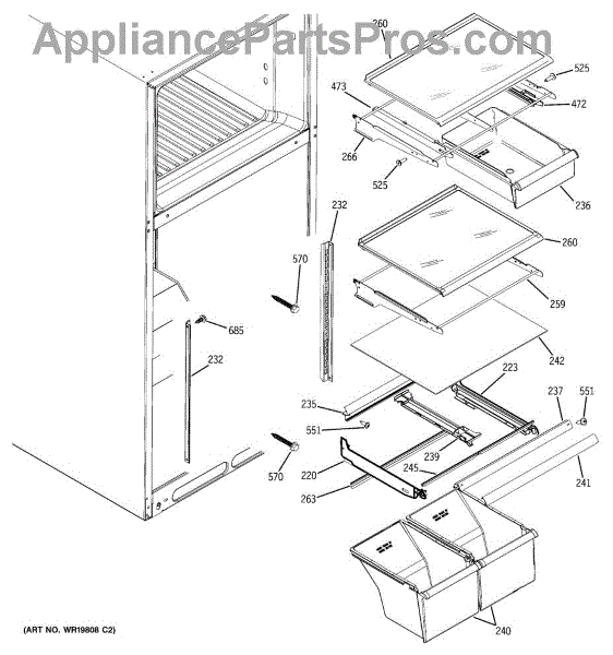 Parts for Ge DTL18ICSERBS: 05 - Fresh Food Shelves Parts