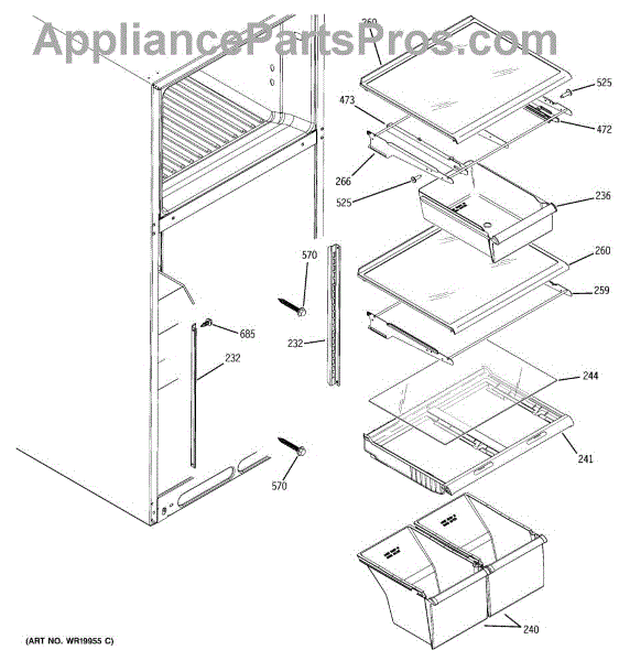 Parts for Ge DTL18ICSURBS: 05 - Fresh Food Shelves Parts