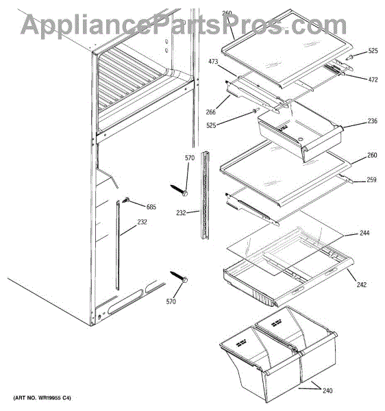 Parts for Ge DTL18ICSVRBS: 05 - Fresh Food Shelves Parts