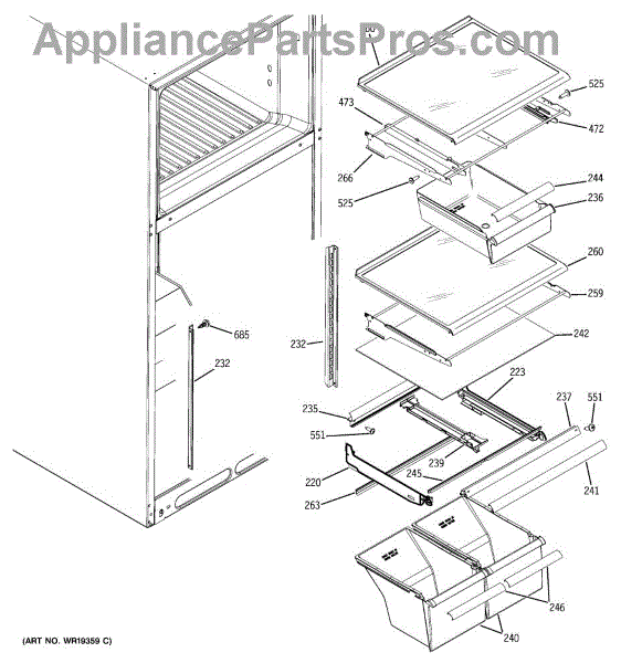 Parts for Ge DTS18ICSARBB: 05 - Fresh Food Shelves Parts
