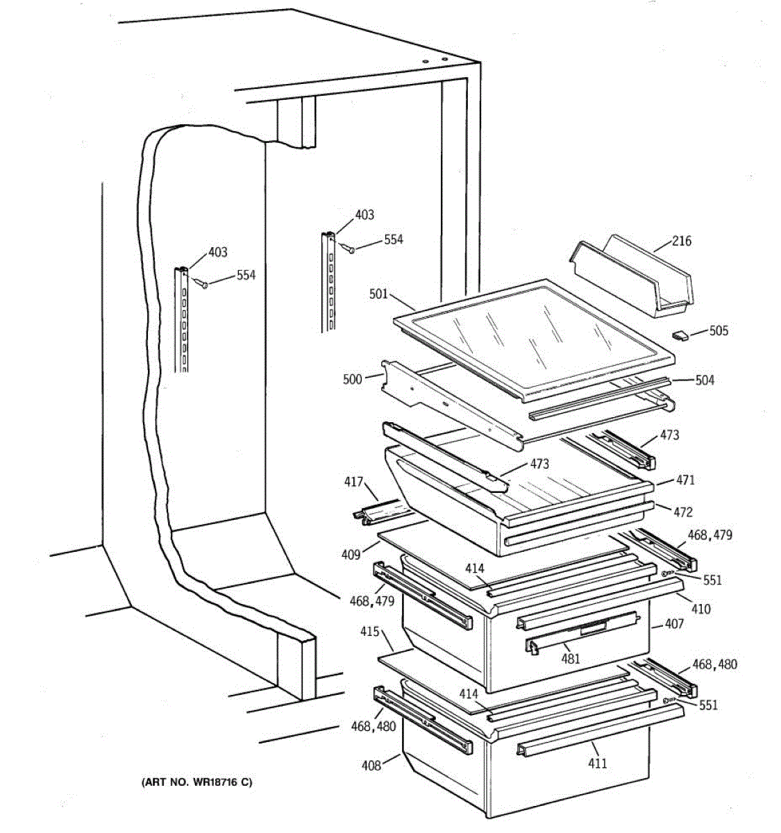 Shelf track for refrigerator. Guides and supports adjustable shelves, allowing smooth sliding movement. Replace if cracked, broken, or worn smooth.