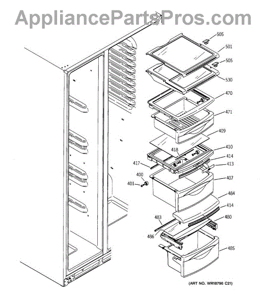 Replaces cracked or broken crisper drawer cover shelf in your refrigerator. Forms flat surface above produce drawers and supports bins for smooth sliding.