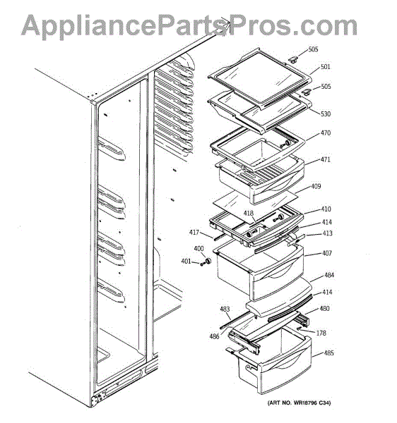 The Drawer Cover is an OEM replacement part for select GE refrigerator vegetable and deli drawers. It protects stored contents from dehydration, contaminants and prolonged illumination while keeping the drawers light-sealed. Proper drawer insulation optimizes food storage conditions. Causes of a bad drawer cover can include cracks and breaks from repeated drawer opening/closing stresses over time. Exposure to produce acids and moisture accelerates degradation of plastic sealing surfaces. Symptoms include: