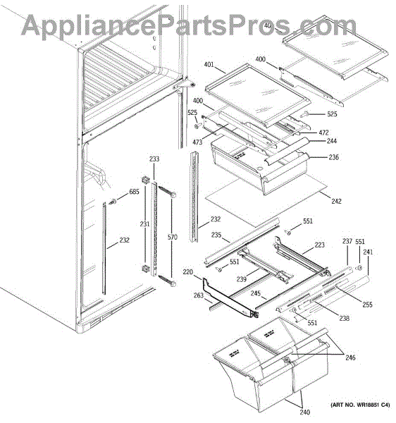 Parts for Ge ETS18XBPARWW: 05 - Fresh Food Shelves Parts