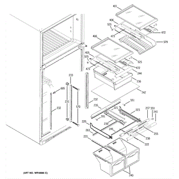Parts for Ge ETS19XBMARCC: 04 - Fresh Food Shelves Parts