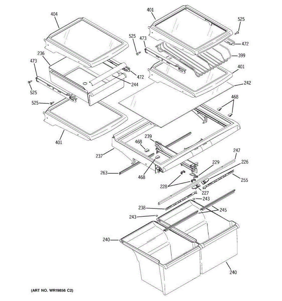 Causes of a bad slide pan can include wear and tear from regular use, damage from overloading the drawer, or accidental impact that leads to bending or breaking. Ensuring the slide pan is in good condition is essential for the smooth operation of the refrigerator drawers.