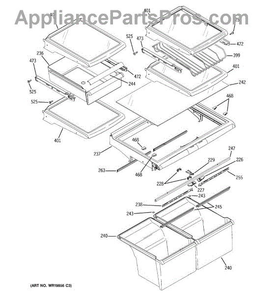 The Slide Pan Right Hand is an OEM part for GE refrigerators. This component supports and guides the movement of the refrigerator's crisper or deli drawer, allowing it to slide in and out smoothly. It ensures easy access to stored food items and helps maintain proper alignment and functionality of the drawer.