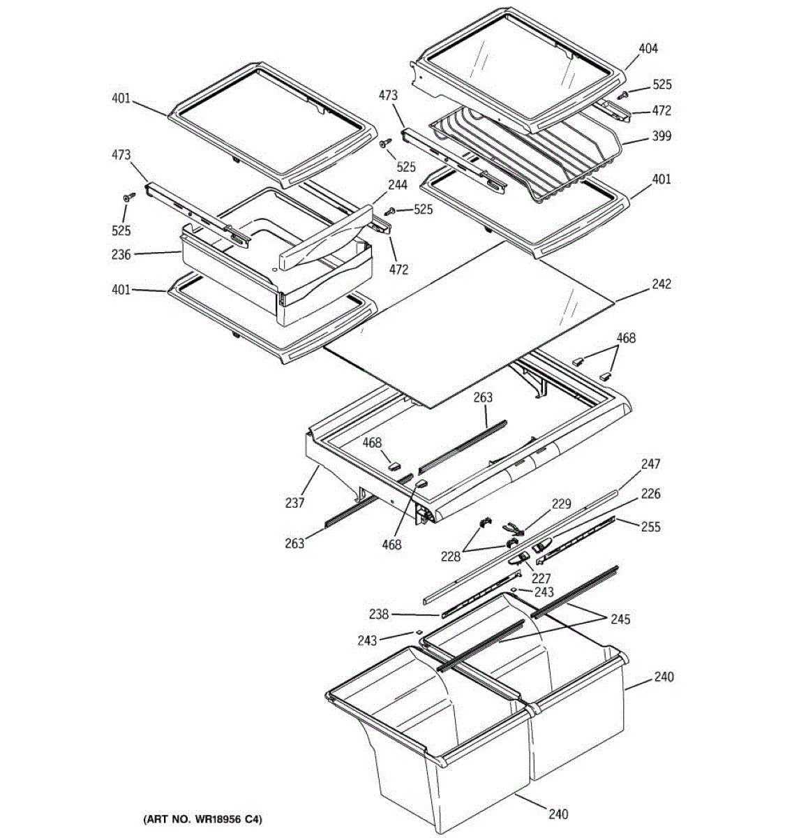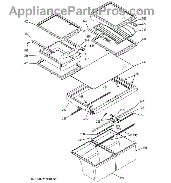 Parts for Ge ETS22XBPDRWW: 06 - Fresh Food Shelves Parts