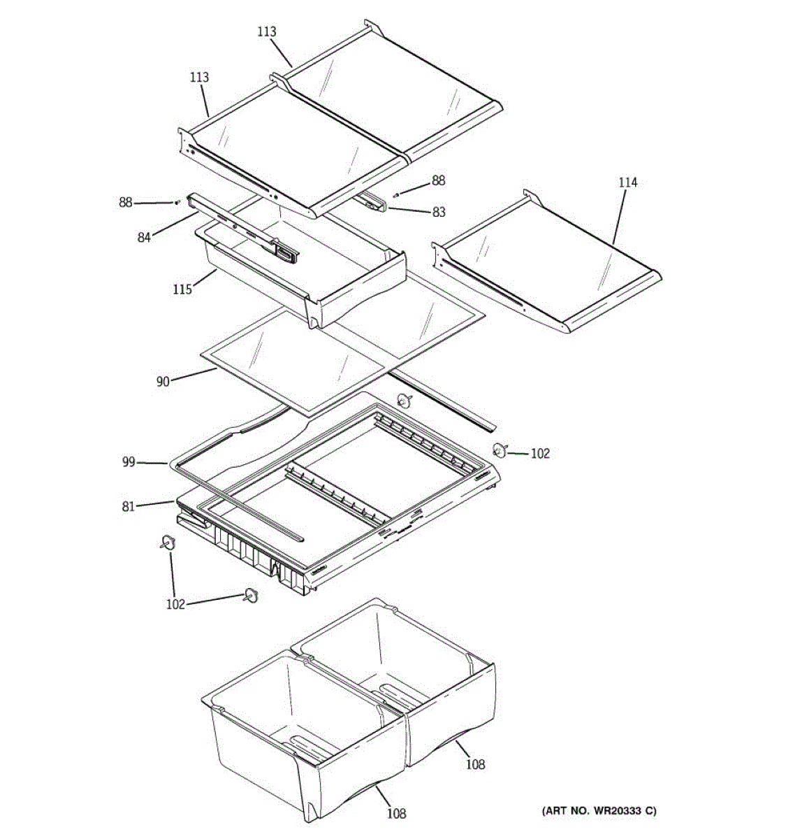 Parts for Ge GBSC3HBXARCC: 05 - Fresh Food Shelves Parts