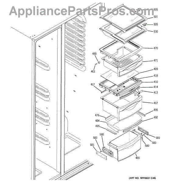 The Middle Drawer Assembly is an OEM part for GE refrigerators. This drawer provides additional storage space, typically for fruits, vegetables, or deli items, helping to organize and maximize the refrigerator’s interior space.