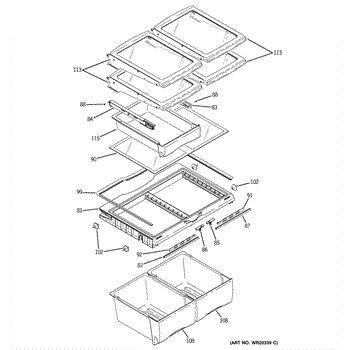 Clear plastic vegetable pan that slides on rails in the crisper section. Replace if cracked, broken, or missing to restore organized produce storage.