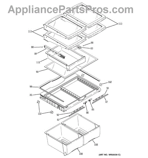 Replaces the cracked or warped crisper drawer frame that supports the glass shelf above vegetable drawers and forms the rails for smooth drawer sliding.