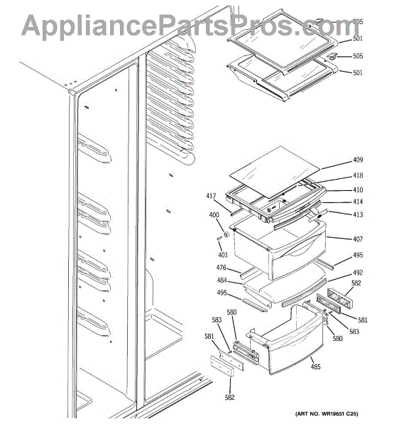 The Humidity Control Slide is an OEM replacement part for GE refrigerators. This slide is responsible for adjusting settings inside the refrigerator such as the crisper humidity levels. Proper functioning of the humidity control slide allows for optimization of storage conditions based on the specific items stored. Causes of a bad humidity control slide can include normal wear and tear over time, as well as issues like damage or obstruction that prevent the smooth operation of the slide mechanism. Symptoms of a bad humidity control slide include:
