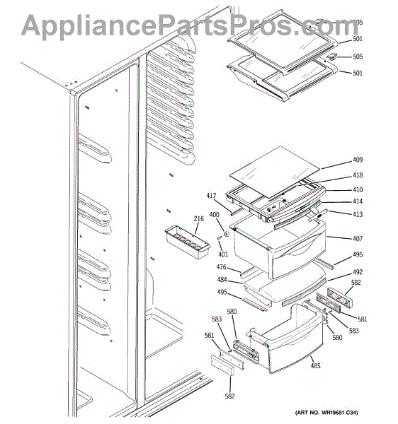The Shelf Stop is an OEM replacement part for GE refrigerators. The shelf stop in your refrigerator is what locks the shelf into the refrigerator liner.The shelf stop features a small protruding nub that fits into pre-cut slots in shelf supports, preventing shelves from being inserted too far. Causes of a bad shelf stop can include wear over many years of shelf adjustment, or damage from impact with shelves. Symptoms of a bad shelf stop include: