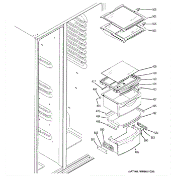 The Middle Drawer Assembly is an OEM part for GE refrigerators. This drawer provides additional storage space, typically for fruits, vegetables, or deli items, helping to organize and maximize the refrigerator’s interior space.