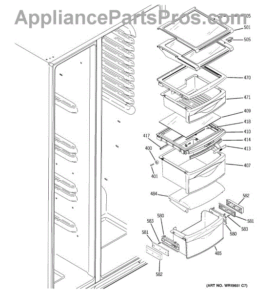 Covers the evaporator area and collects defrost water in your side-by-side refrigerator. Replace if cracked, broken, or missing to prevent leaks.