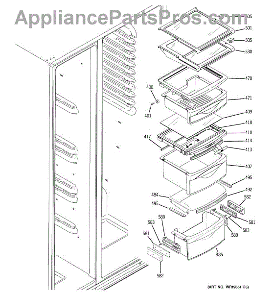 The Humidity Control Slide is an OEM replacement part for GE refrigerators. This slide is responsible for adjusting settings inside the refrigerator such as the crisper humidity levels. Proper functioning of the humidity control slide allows for optimization of storage conditions based on the specific items stored. Causes of a bad humidity control slide can include normal wear and tear over time, as well as issues like damage or obstruction that prevent the smooth operation of the slide mechanism. Symptoms of a bad humidity control slide include: