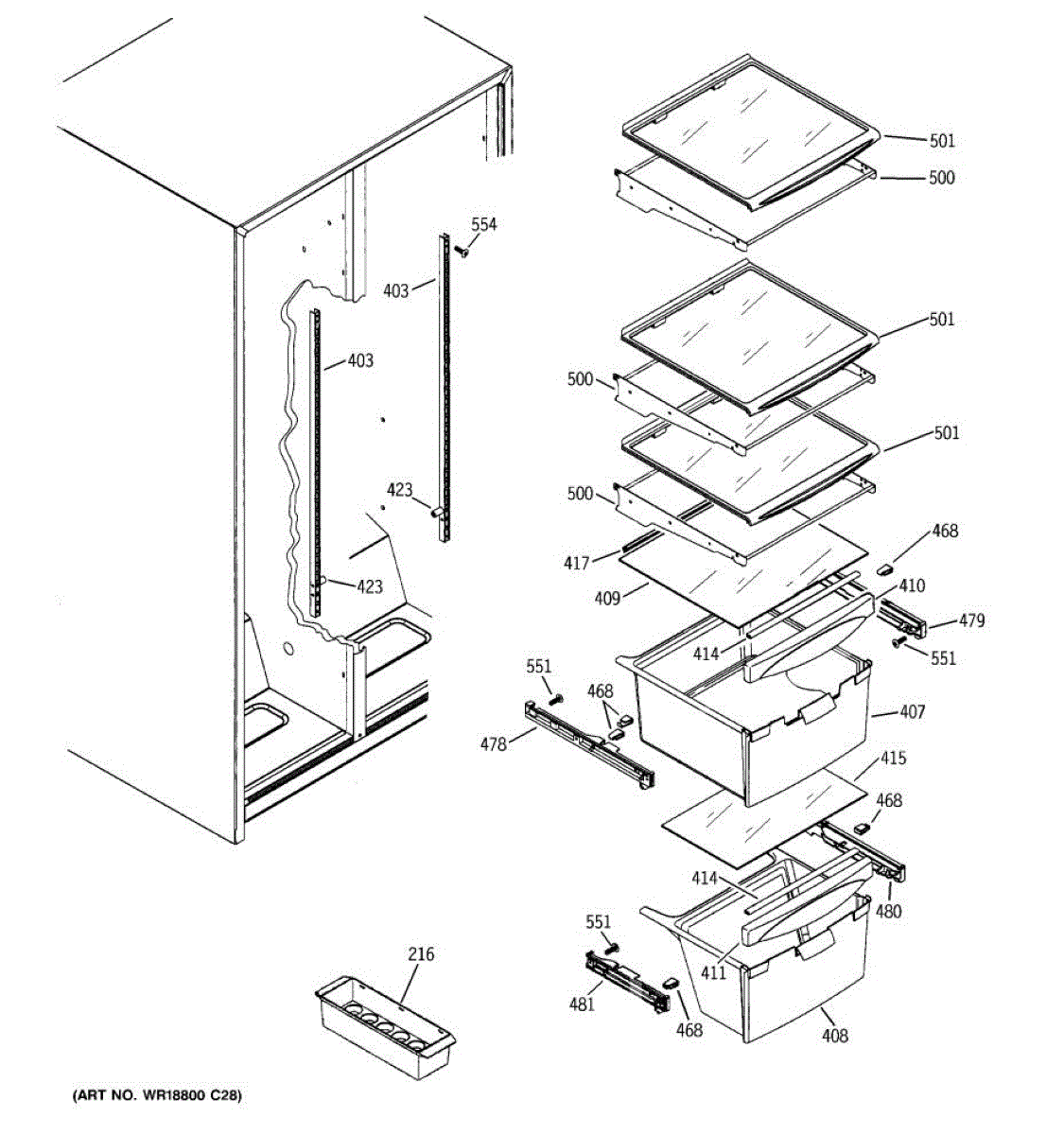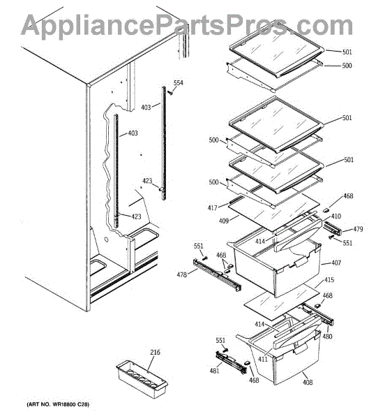 Parts for Ge GSE22KETGFWW: 07 - Fresh Food Shelves Parts