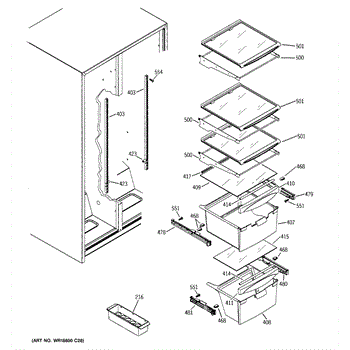 Clear meat pan for side-by-side refrigerators. Stores raw meats and poultry in the fresh food compartment. Replace if cracked, broken, or missing.