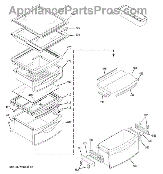 The Shelf Stop is an OEM replacement part for GE refrigerators. The shelf stop in your refrigerator is what locks the shelf into the refrigerator liner.The shelf stop features a small protruding nub that fits into pre-cut slots in shelf supports, preventing shelves from being inserted too far. Causes of a bad shelf stop can include wear over many years of shelf adjustment, or damage from impact with shelves. Symptoms of a bad shelf stop include: