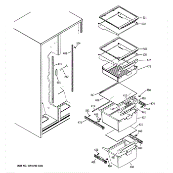 The Slide Assembly RH is an OEM replacement part for GE side-by-side refrigerators. As a replaceable sub-assembly, it restores smooth extension of plastic vegetable/multi-purpose slides on the right interior. The slide measures approximately 16 inches.