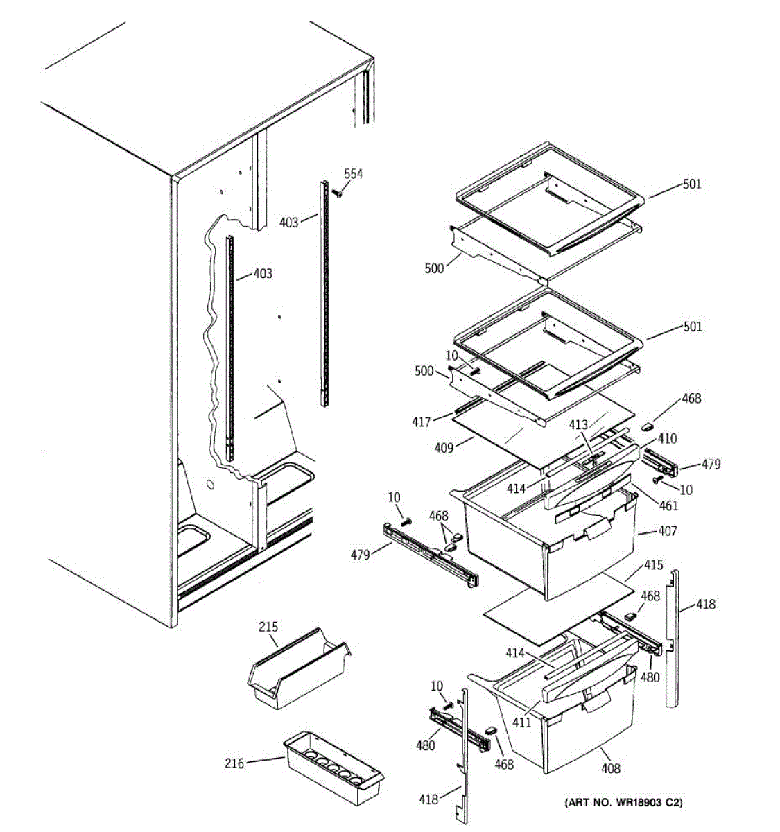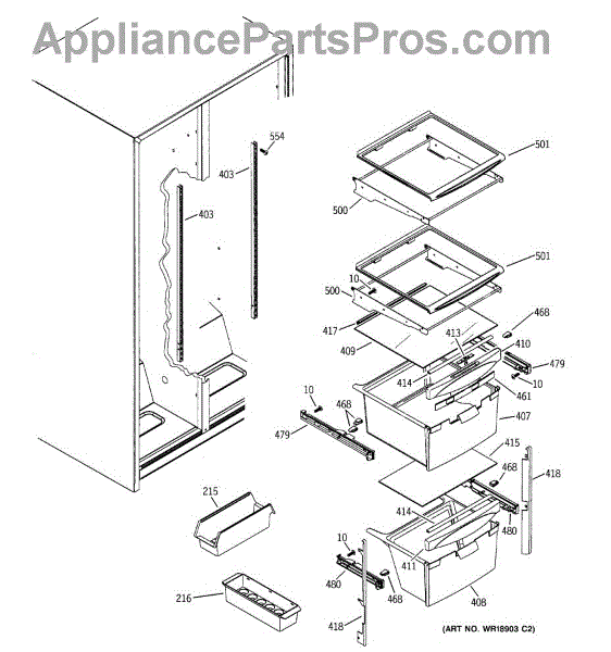 The Slide Assembly RH is an OEM replacement part for GE side-by-side refrigerators. As a replaceable sub-assembly, it restores smooth extension of plastic vegetable/multi-purpose slides on the right interior. The slide measures approximately 16 inches.
