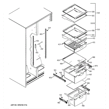 The Slide Assembly RH is an OEM replacement part for GE side-by-side refrigerators. As a replaceable sub-assembly, it restores smooth extension of plastic vegetable/multi-purpose slides on the right interior. The slide measures approximately 16 inches.