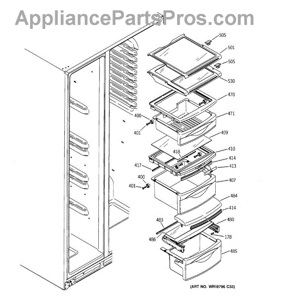 Replaces cracked or broken crisper drawer cover shelf in your refrigerator. Forms flat surface above produce drawers and supports bins for smooth sliding.