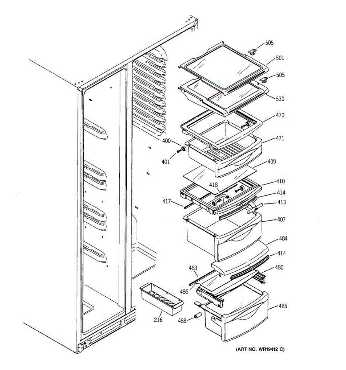 Replace a cracked or broken tuckaway shelf assembly in your side-by-side refrigerator. Restores the fold-away shelf mechanism for flexible storage.