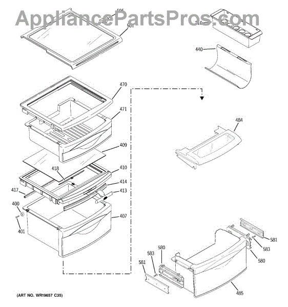 Replace your cracked or broken refrigerator middle drawer pan. This assembly includes wheels and installs in the fresh food section for deli items and produce.