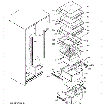 The Slide Assembly RH is an OEM replacement part for GE side-by-side refrigerators. As a replaceable sub-assembly, it restores smooth extension of plastic vegetable/multi-purpose slides on the right interior. The slide measures approximately 16 inches.